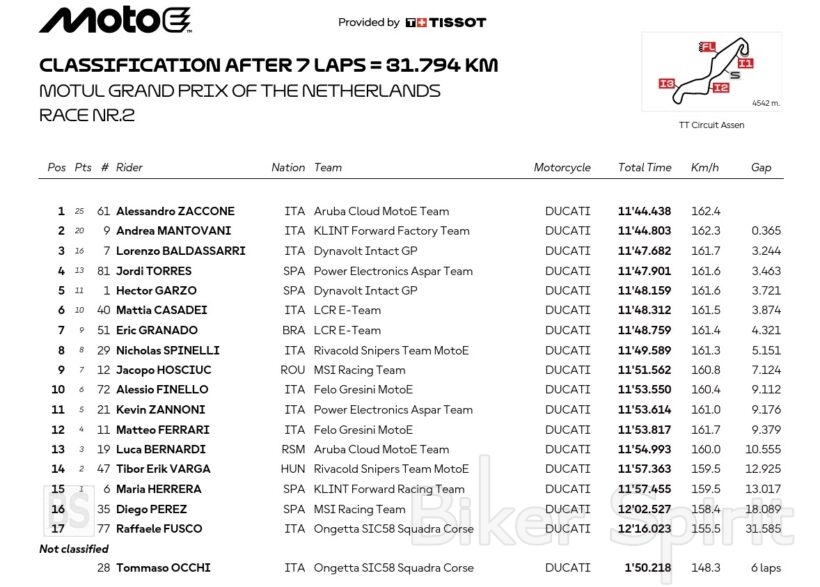 Moto E: O Zaccone κέρδισε τον Αγώνα 2 στο Assen – Mantovani και Baldassarri στο βάθρο – Αποτελέσματα