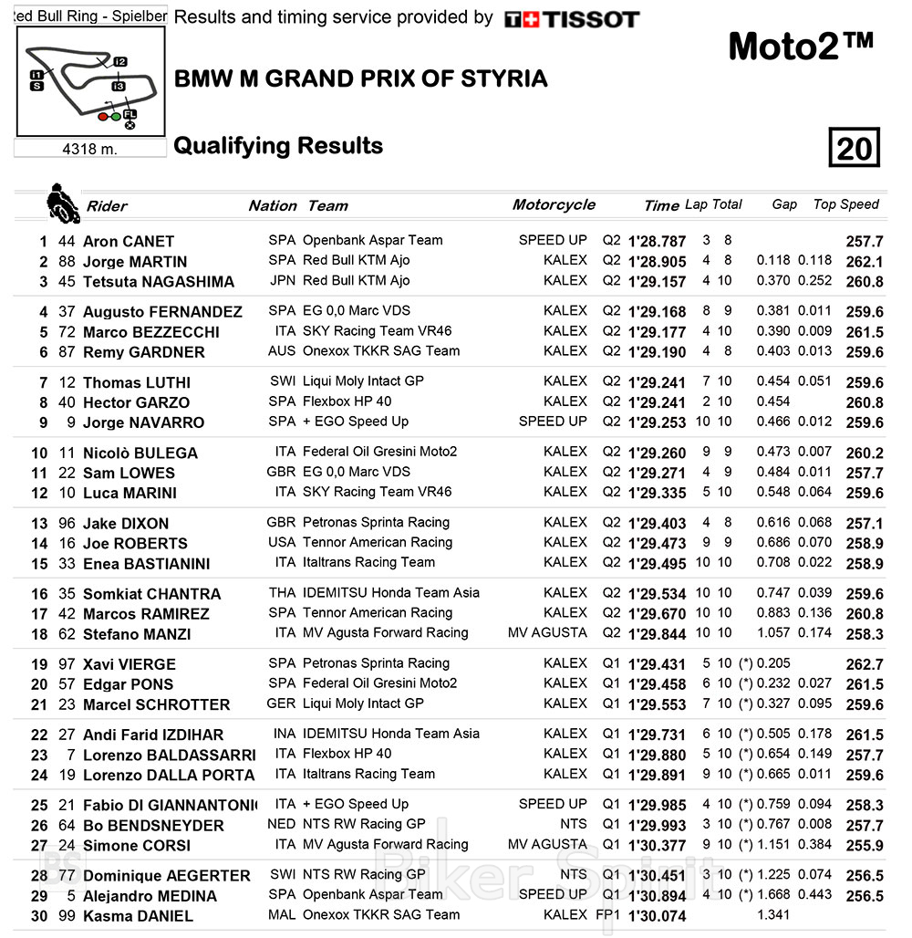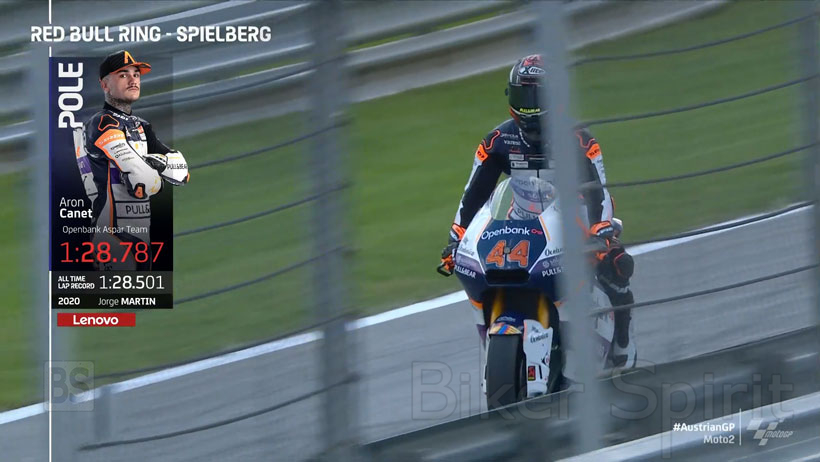 Ο Aron Canet κέρδισε την Pole position του Grand Prix της Στυρίας στην κατηγορία Moto2, για τον πέμπτο γύρο του Παγκόσμιου Πρωταθλήματος 2020 στην ενδιάμεση κατηγορία.