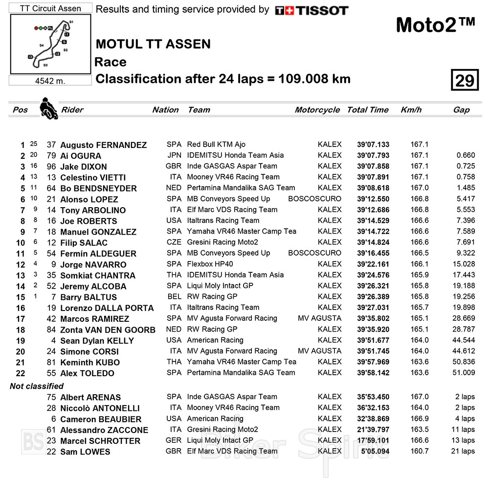 Moto2: Ο Augusto Fernandez κέρδισε τον αγώνα στο Assen – Αποτελέσματα