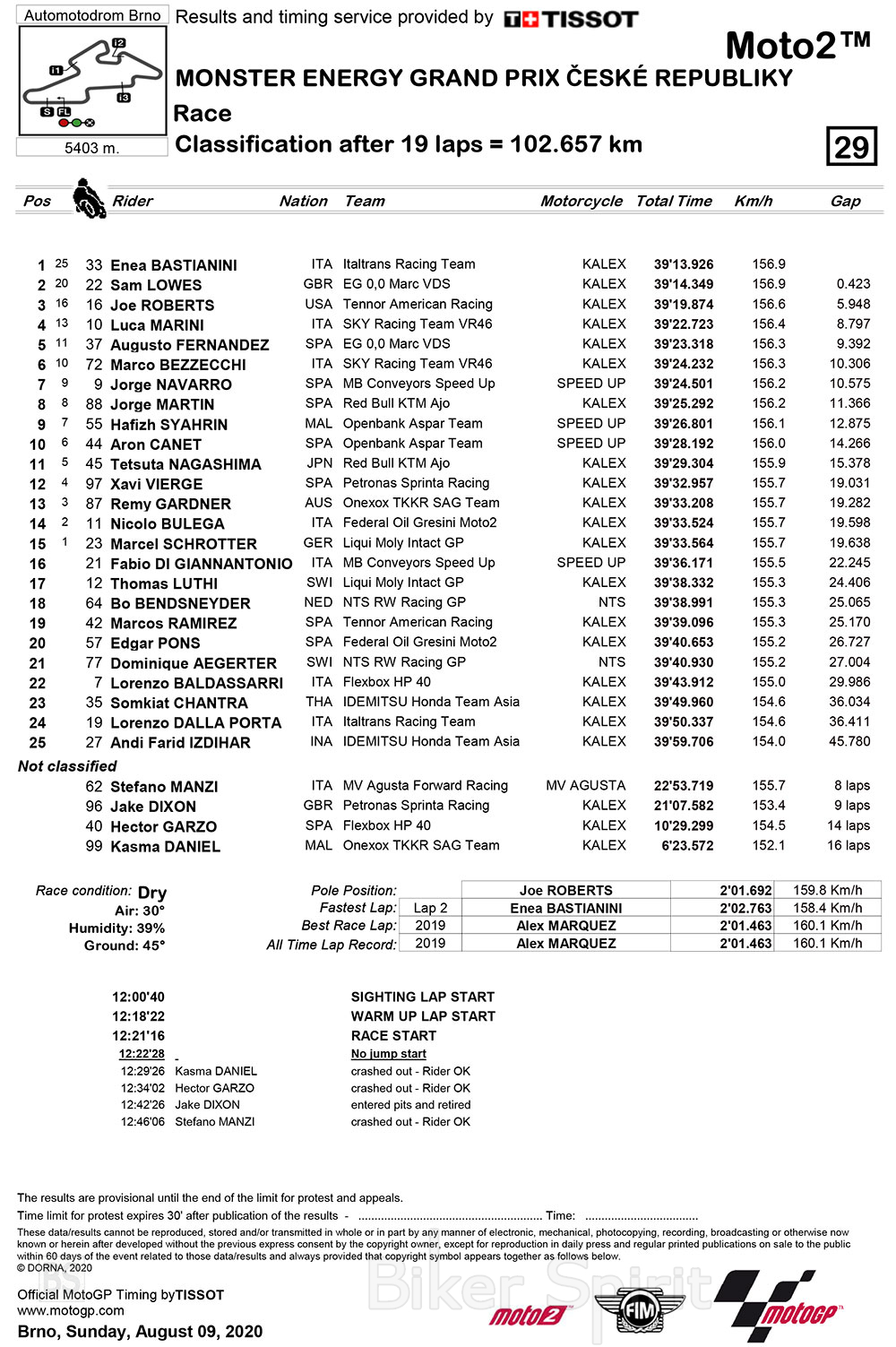 Ο Jorge Navarro (Speed Up) τερμάτισε στην 7η θέση, μπροστά από τους Jorge Martin (Red Bull Ajo), Hafizh Syahrin (Speed Up Team Aspar) και Aron Canet (Speed Up Team Aspar) που συμπλήρωσαν την πρώτη δεκάδα στο Brno.