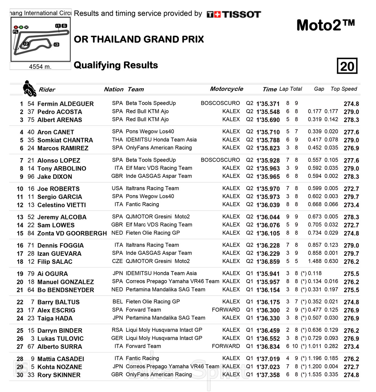 Δεύτερη σειρά του grid για τον Aron Canet (Pons) στην 4η θέση, μπροστά από τον τοπικό ήρωα Somkiat Chantra (Team Asia) στην 5η θέση και τον Marcos Ramirez (OnlyFans American Racing) στην 6η.