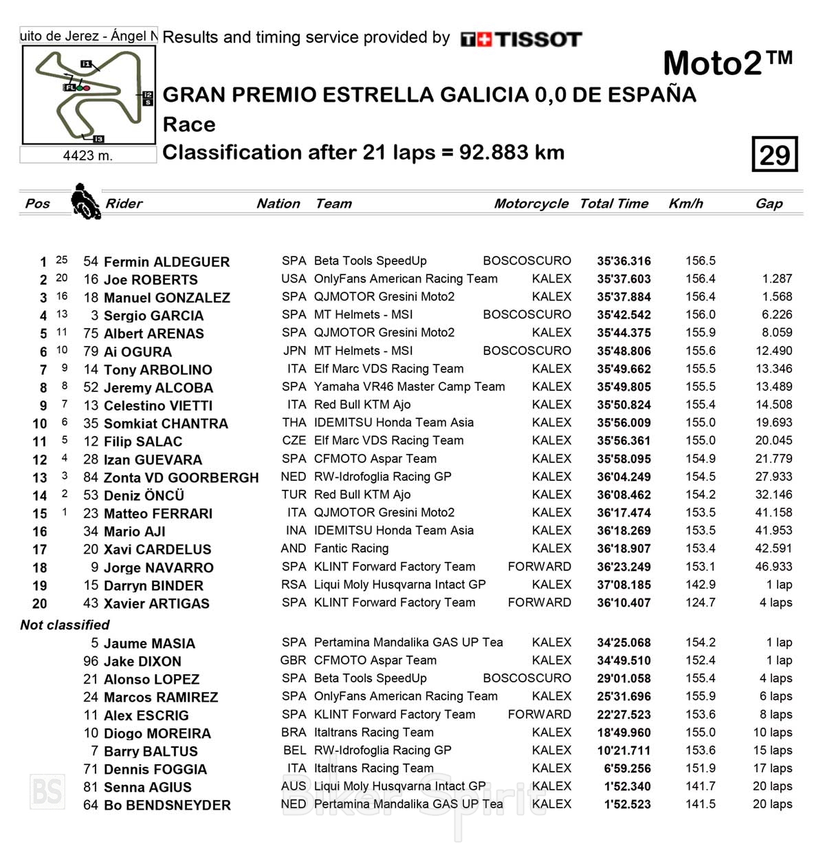 Επίσης σημείωσαν βαθμούς οι Filip Salac (Marc VDS), Izan Guevara (Aspar), Zonta van den Goorbergh (RW Racing GP), Deniz Oncu (Red Bull Ajo) και ο μπαλαντέρ Matteo Ferrari, Gresini Racing.