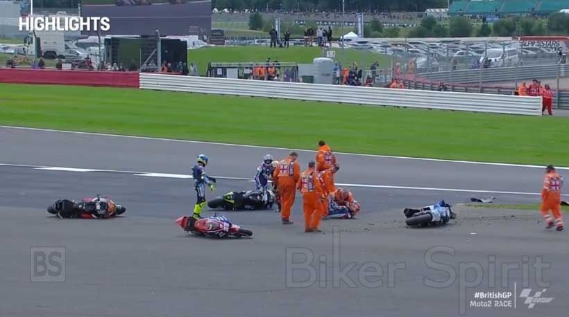 Πτώση του Dennis Foggia (Italtrans), αμέσως μετά την εκκίνηση σε ένα τρακάρισμα που είδε επίσης τους άτυχους πρωταγωνιστές Rory Skinner, Taiga Hada και Borja Gomez.