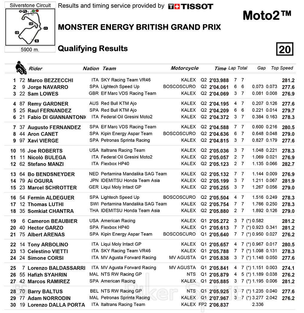 Moto2: Ο Marco Bezzecchi κέρδισε την pole position στο Silverstone – Αποτελέσματα – Χρόνοι