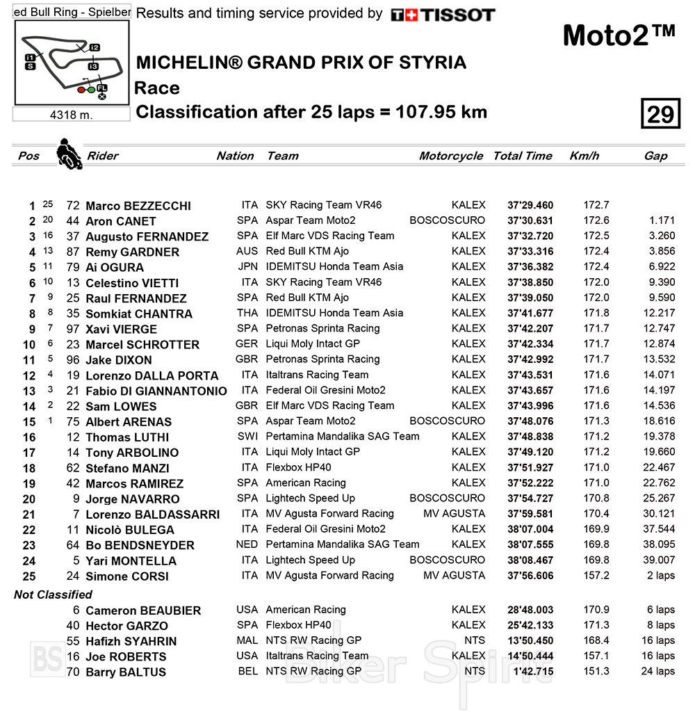 Ο Marco Bezzecchi σημείωσε την πρώτη του νίκη στη σεζόν στο Grand Prix της Στυρίας, για τον δέκατο γύρο της σεζόν Moto2.