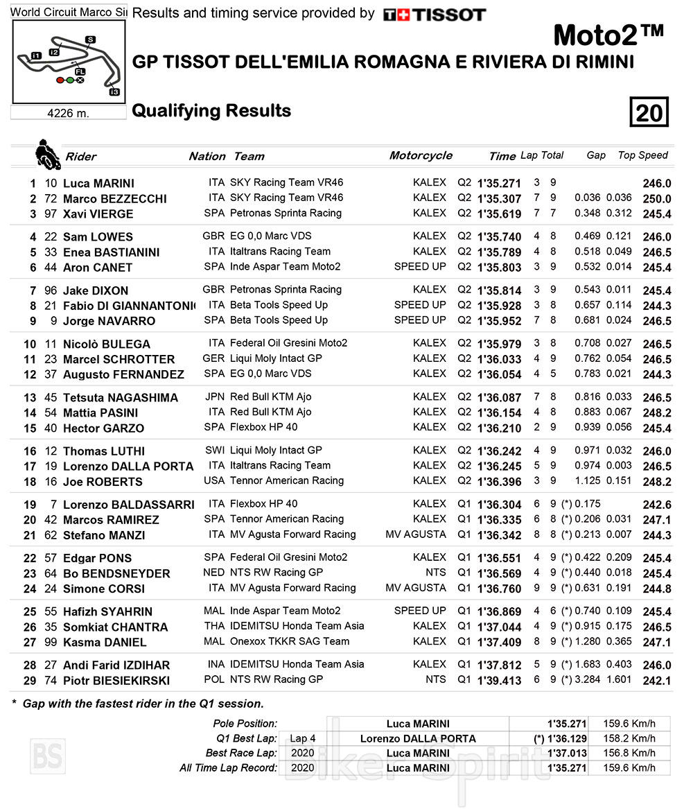 Ο Luca Marini κέρδισε την pole του Grand Prix Emilia Romagna Riviera di Rimini, του Moto2 .