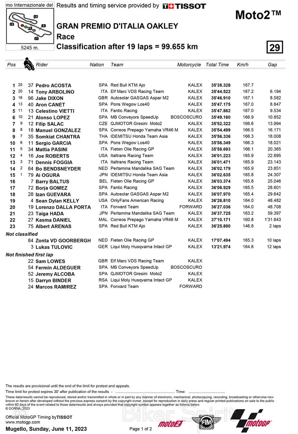 Ο Pedro Acosta κέρδισε το Ιταλικό Grand Prix, της κατηγορίας Moto2, για τον έκτο γύρο του Παγκοσμίου Πρωταθλήματος 2023, στην πίστα Mugello.