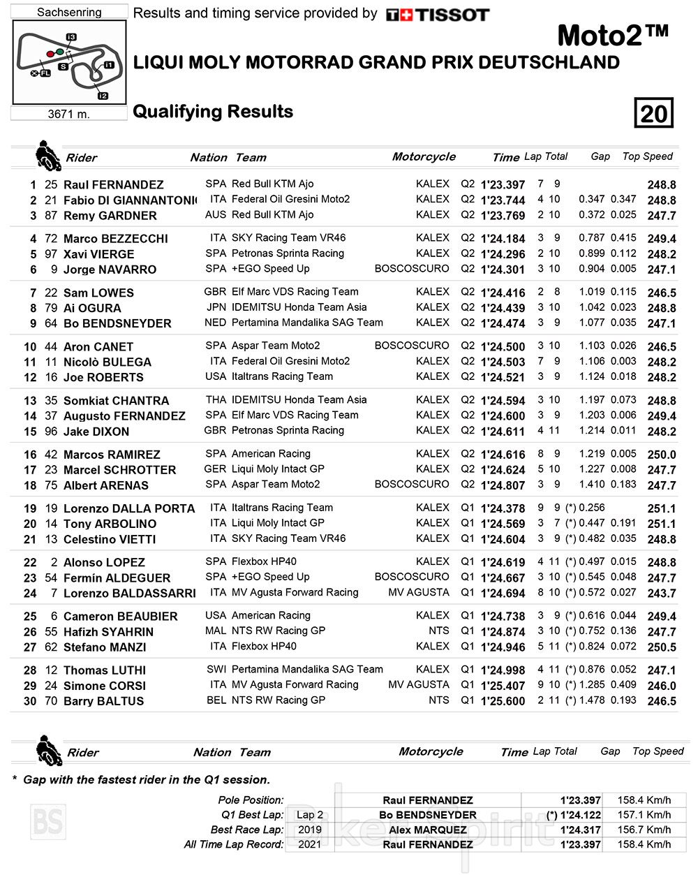 Ο Raul Fernandez κέρδισε την Pole position του Γερμανικού Grand Prix, για τον όγδοο γύρο του Παγκόσμιου Πρωταθλήματος Moto2 του 2021.
