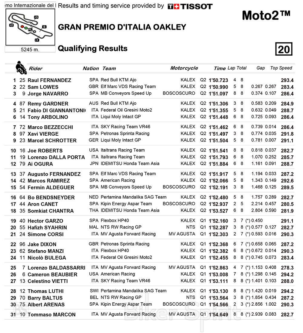 Στην δεύτερη θέση θα είναι ο Sam Lowes (Marc VdS), ενώ με την τρίτη θέση θα κλείσει την πρώτη σειρά ο Jorge Navarro (Speed Up).