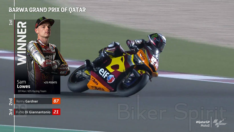 Ο Sam Lowes κερδίζει το Grand Prix του Κατάρ στην κατηγορία Moto2, του 2021.