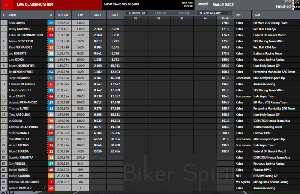 Ο Jake Dixon (Petronas) τερμάτισε 7ος , μπροστά από τον Boe Bendsneyder (Intact GP) και τον Jorge Navarro που ολοκλήρωσε την πρώτη δεκάδα!