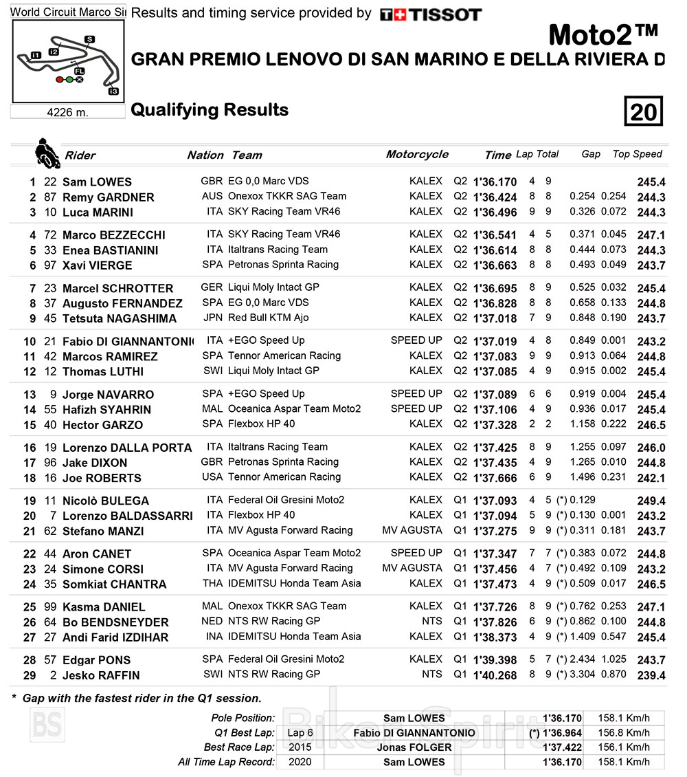 Ο Sam Lowes κερδίζει την pole του Grand Prix του Misano, για τον έβδομο γύρο του Παγκόσμιου Πρωταθλήματος 2020.