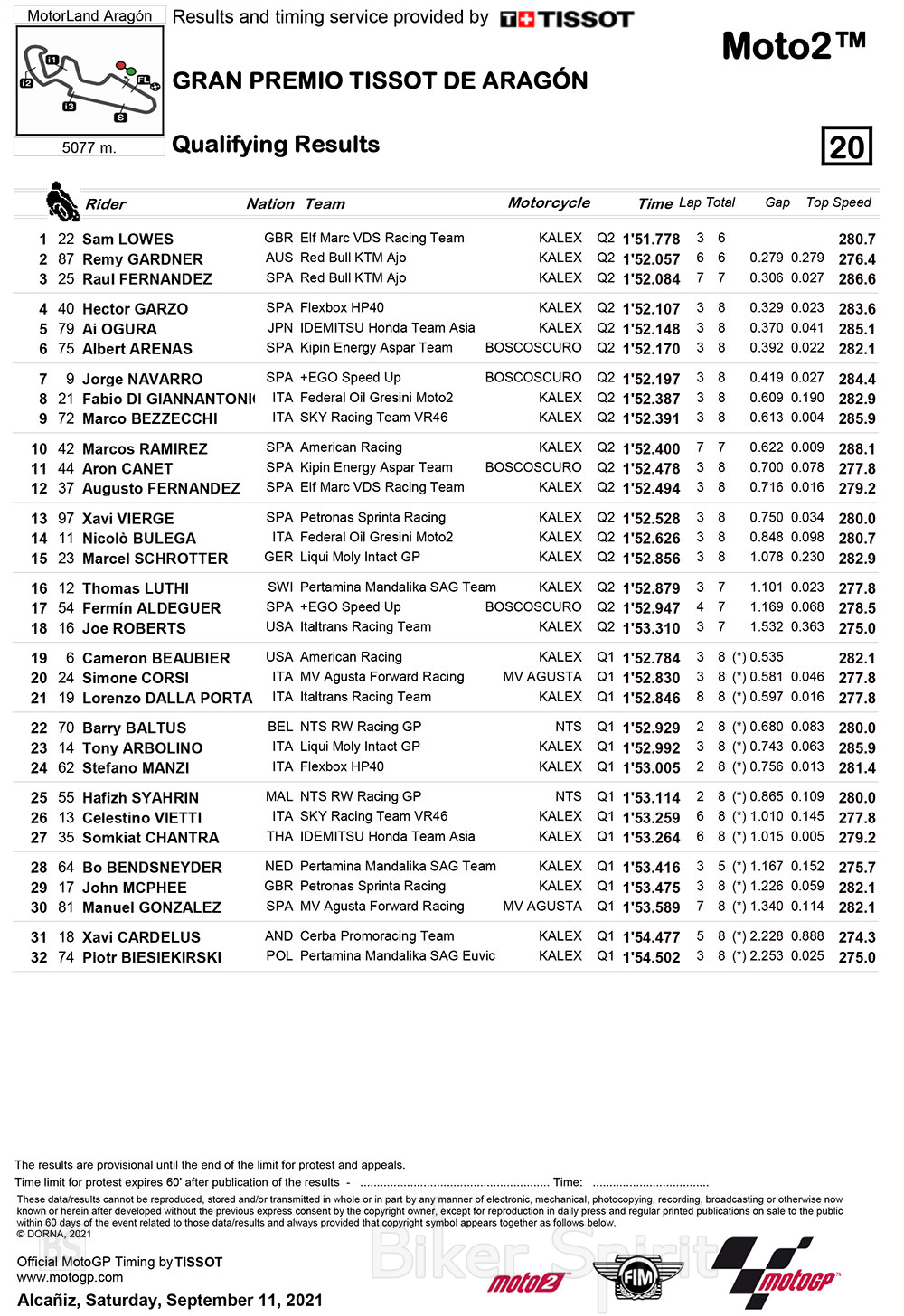 Ο Sam Lowes κέρδισε την pole του Grand Prix της Αραγονίας στην κατηγορία Moto2, για τον 13ο γύρο του Παγκοσμίου Πρωταθλήματος 2021.