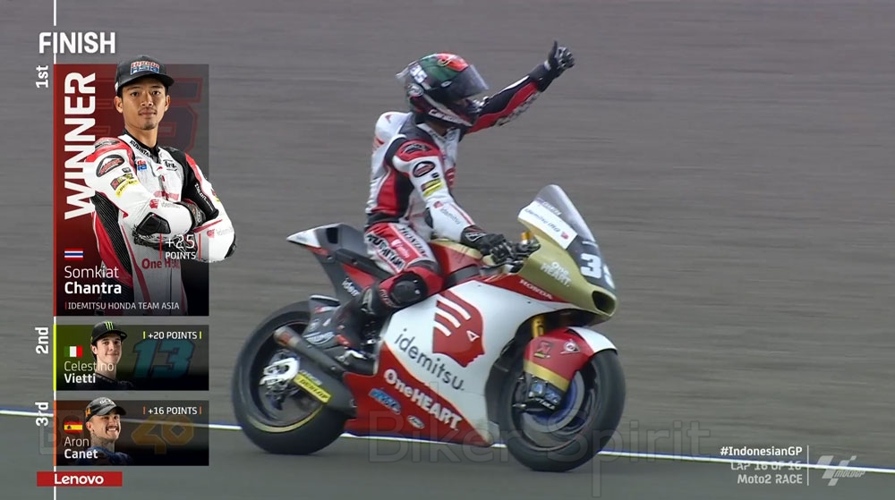 Moto2: Ο Somkiat Chantra κέρδισε τον αγώνα στην Ινδονησία, και έγινε ο πρώτος Ταϊλανδός νικητής σε Grand Prix
