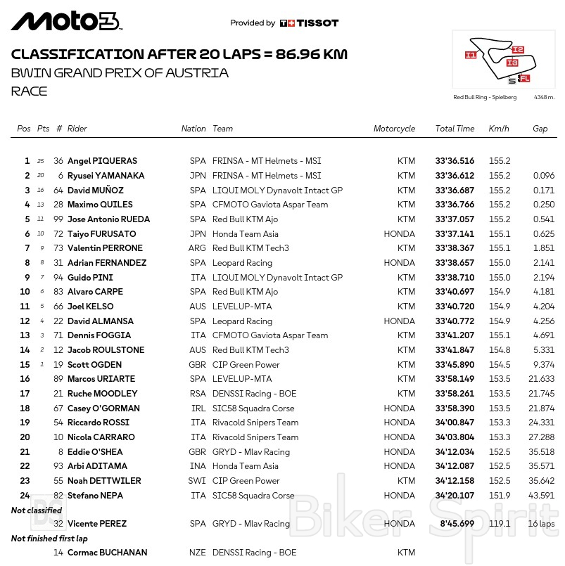 Moto3: Ο Angel Piqueras θριαμβεύει σε έναν επικό αγώνα στο Red Bull Ring – Αποτελέσματα