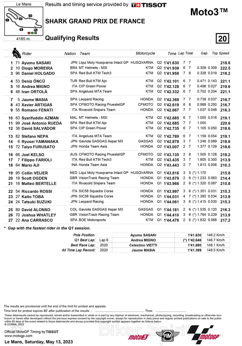 Ο Ayumu Sasaki κερδίζει την pole position του γαλλικού Grand Prix της κατηγορίας Moto3, για τον πέμπτο γύρο του Παγκοσμίου Πρωταθλήματος 2023.