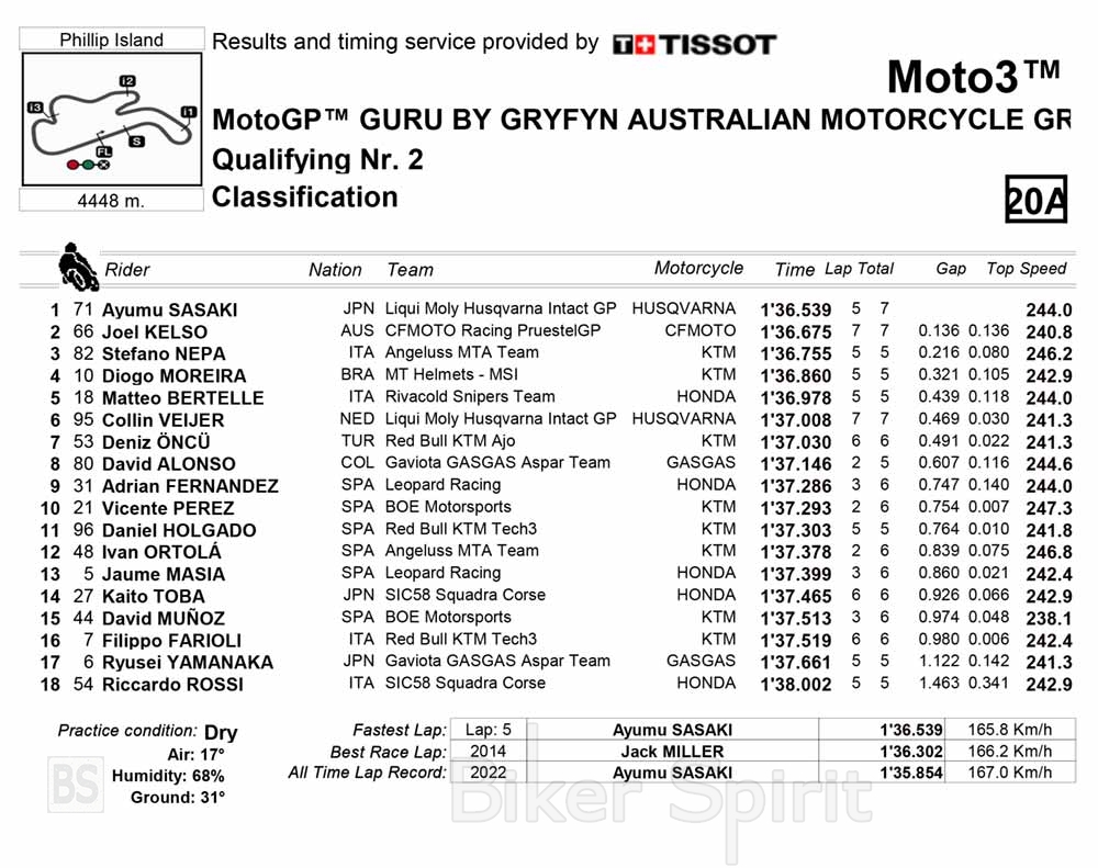 Moto3: Ο Ayumu Sasaki κέρδισε την Pole Position στο Philip Island – Αποτελέσματα
