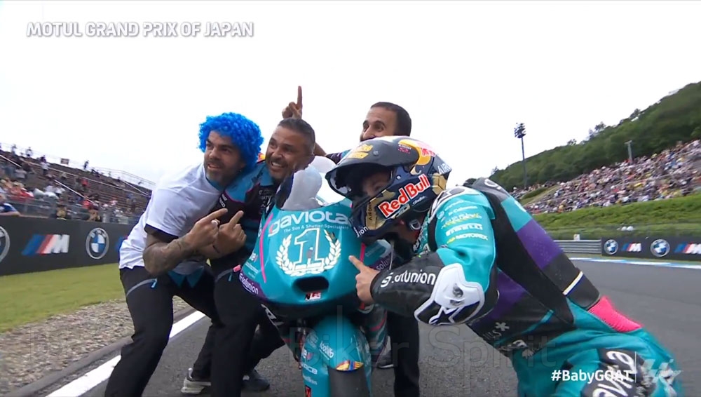 Αλλά την ημέρα του αγώνα στο Motegi όλα τα βλέμματα ήταν στραμμένα στον David Alonso. Μετά την απολύτως τέλεια απόδοση, ο νέος παγκόσμιος πρωταθλητής γιόρτασε με τον διευθυντή της ομάδας Nico Terol, τον μέντορα και ιδιοκτήτη της ομάδας Jorge Martinez και ολόκληρη την ομάδα CFMOTO.