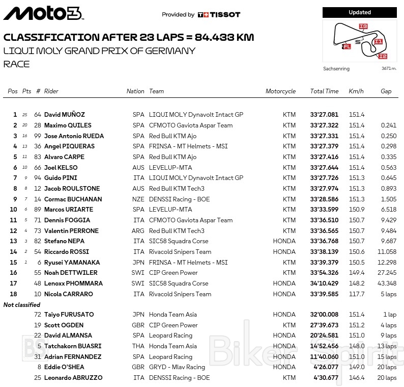 Moto3: O David Muñoz νικητής του αγώνα στο Sachsenring – Αφιέρωσε τη νίκη του στον Borja Gomez
