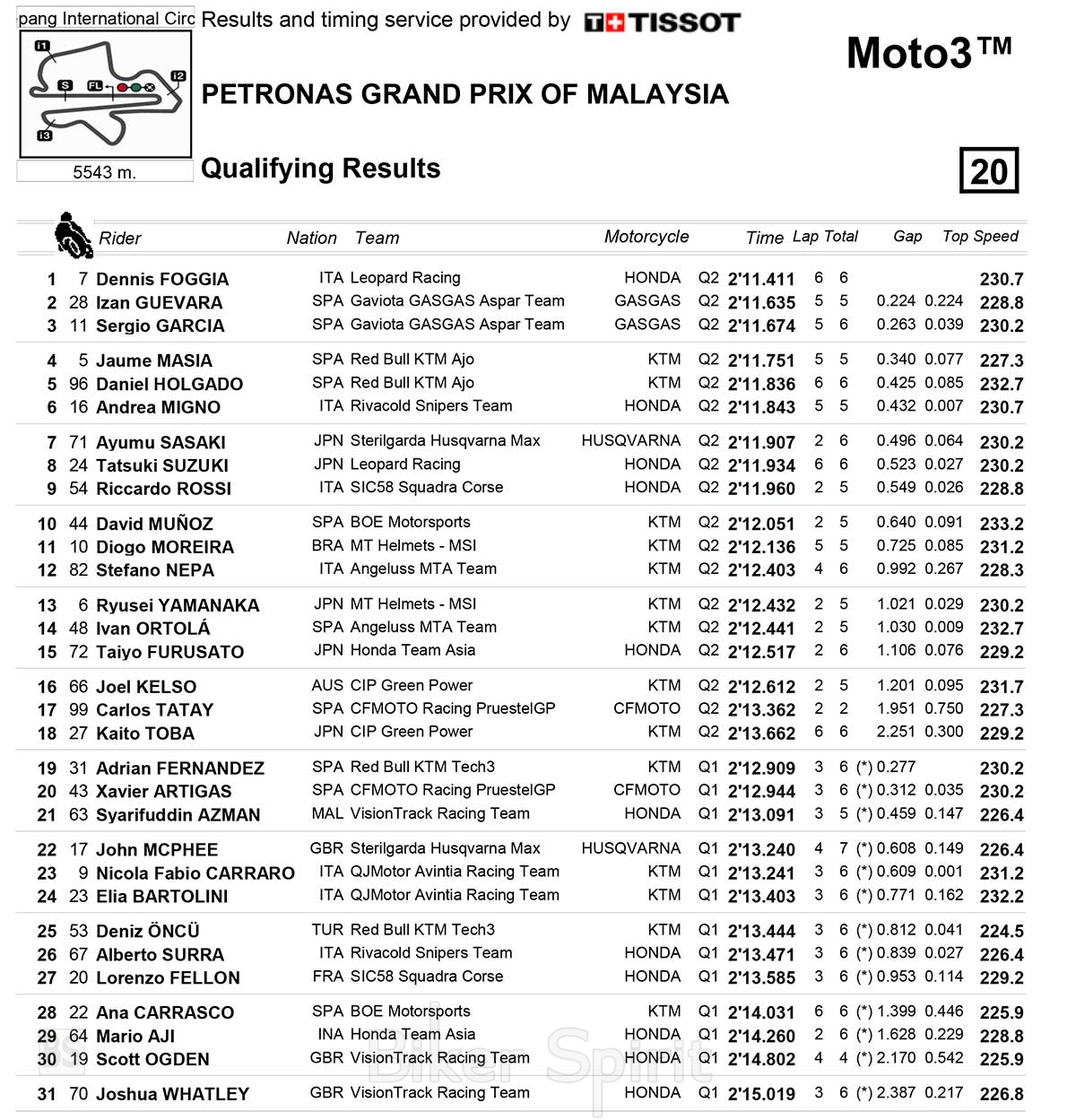 Ο Dennis Foggia πήρε την pole position στο Grand Prix της Μαλαισίας στην κατηγορία Moto3, για τον 19ο και προτελευταίο γύρο του Παγκοσμίου Πρωταθλήματος 2022.
