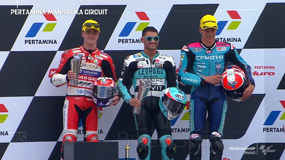 Ο αγώνας για το βάθρο ήταν τεράστιος, με δέκα αναβάτες να αγωνίζονται μέχρι το τέλος. Στο τέλος, ο Izan Guevara (GasGas Aspar) και ο pole-man Carlos Tatay (CFMOTO Pruestel GP), που έκανε μεγάλη “επιστροφή” μετά από πέναλτι long lap, συμπλήρωσαν το βάθρο!