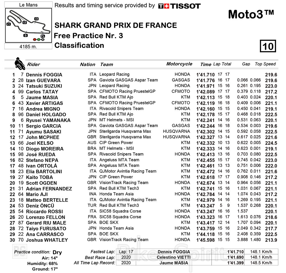Moto3: O Dennis Foggia κέρδισε την Pole position στο Le Mans – Αποτελέσματα