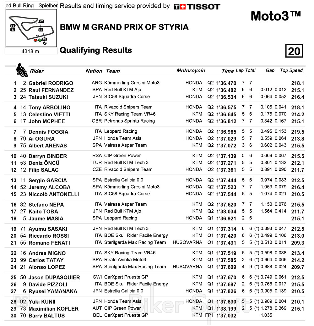 Έβδομη θέση και τρίτη σειρά για τον Dennis Foggia (Honda Leopard) με τον Ai Ogura (Honda Team Asia) στην 8η θέση και τον ηγέτη της παγκόσμιας κατάταξης Albert Arenas (KTM Team Aspar) να κλείνει την 3η σειρά στην 9η θέση!