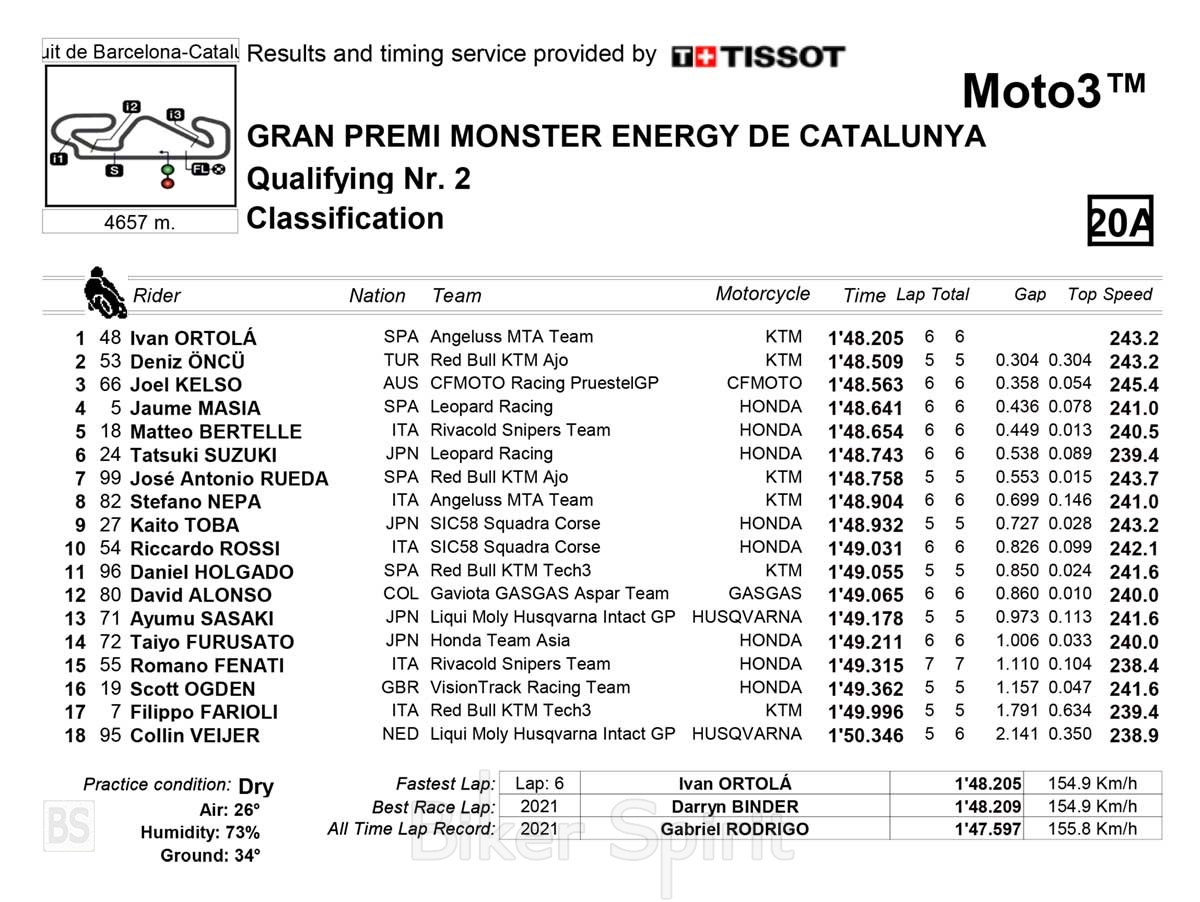Ο αναβάτης της KTM MTA Team σημείωσε τον ταχύτερο γύρο με χρόνο 1:48.205, μπροστά από τον ομόστυαλό του Deniz Oncu (Red Bull Ajo) με περισσότερα από τρία δέκατα (+0.304s) και το CFMoto PruestelGP κατά 0.358s με τον Joel Κέλσο.