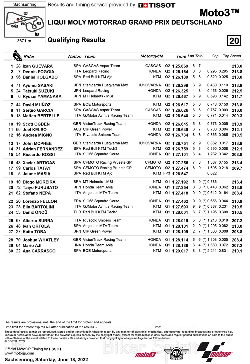 Moto3: Ο Izan Guevara κέρδισε την pole position στο Sachsenring – Αποτελέσματα