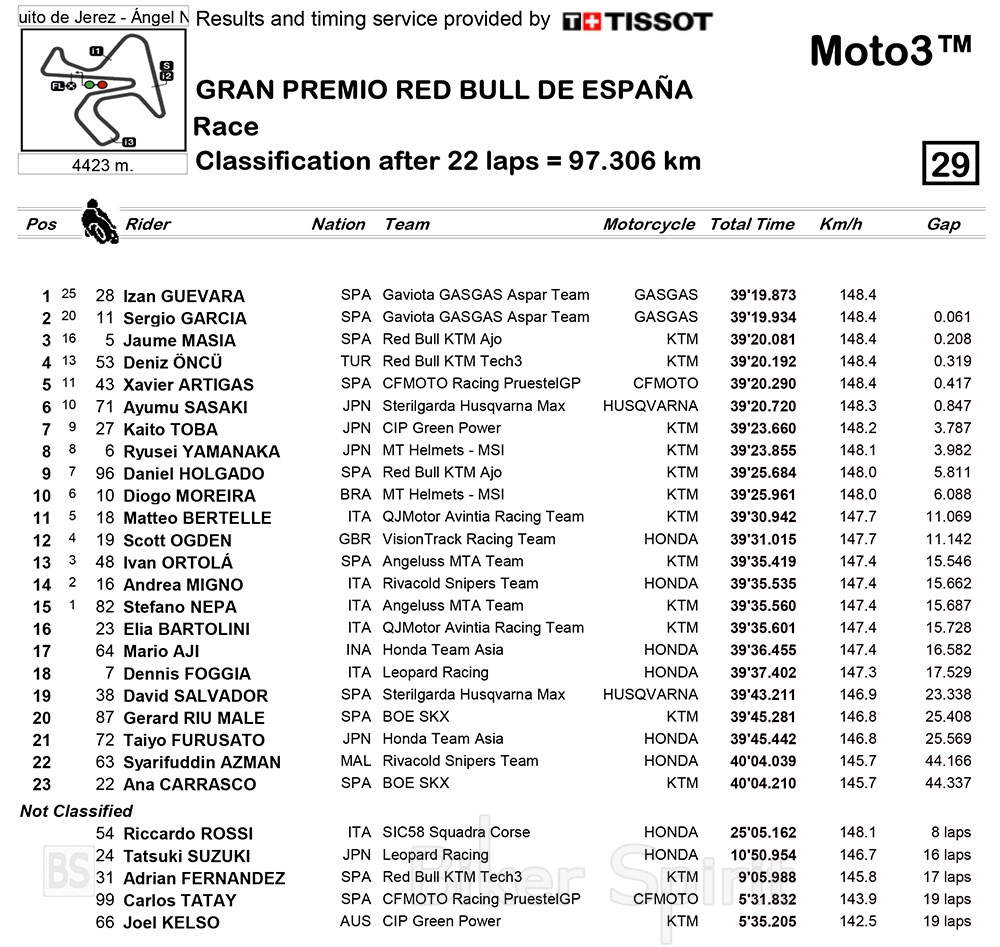 Ο Guevara κέρδισε έτσι τον ομόστυαλό του Sergio Garcia, αλλά και τον Jaume Masia (KTM Ajo) και πήρε τη δεύτερη νίκη στην καριέρα του.