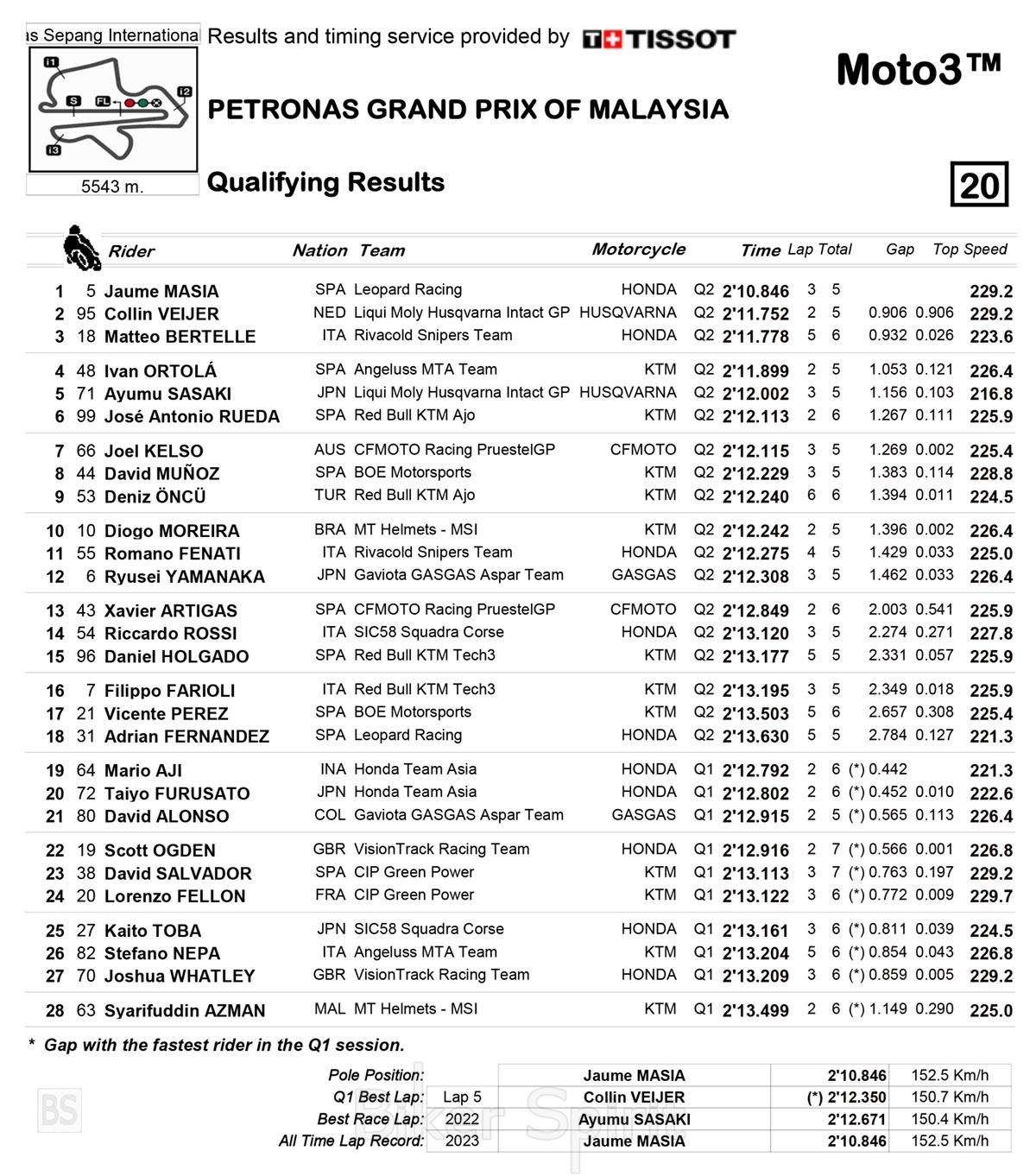 Ο Jaume Masia κέρδισε την pole position του Grand Prix της Μαλαισίας της κατηγορίας Moto3, για τον 18ο γύρο του MotoGP 2023!