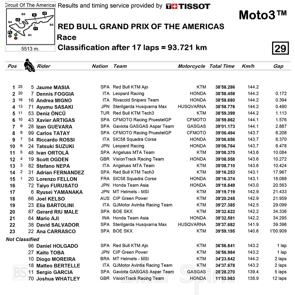 Moto3: Ο Jaume Masia κέρδισε τον αγώνα στην Αμερική – Αποτελέσματα