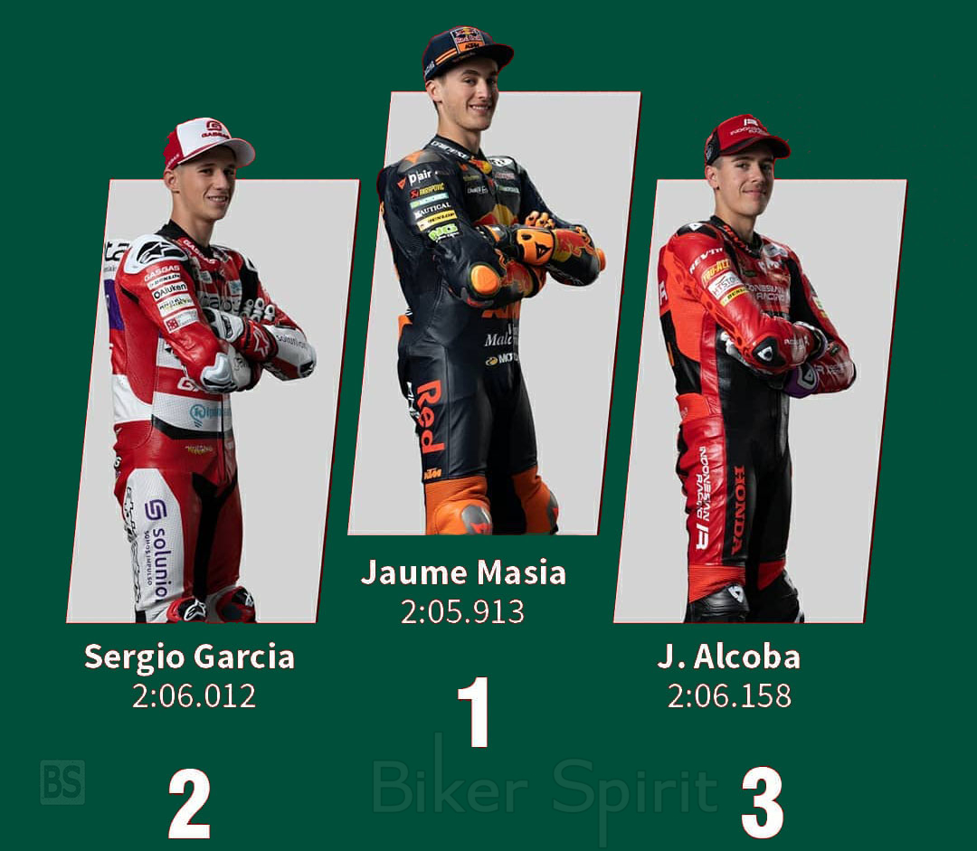 Ο οδηγός της ομάδας KTM Ajo σταμάτησε το χρονόμετρο στο 2:05.913 μπροστά από τον Sergio Garcia (GASGAS) και τον Jeremy Alcoba (Gresini) που έκλεισε την πρώτη σειρά εκκίνησης!