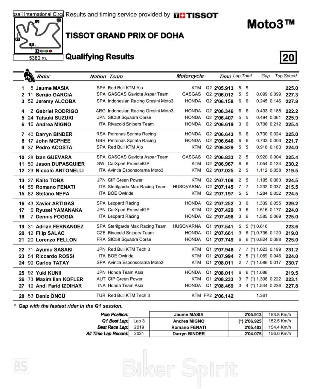 Moto3: Ο Jaume Masia κερδίζει την pole position στο Qatar 2 – Χρόνοι – Αποτελέσματα