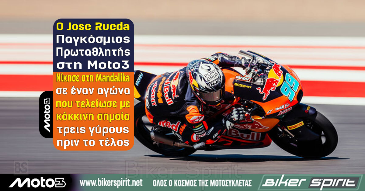 Moto3: Ο Jose Rueda Παγκόσμιος Πρωταθλητής στη Moto3 – Nίκησε στη Mandalika σε έναν αγώνα που τελείωσε με κόκκινη σημαία τρεις γύρους πριν το τέλος
