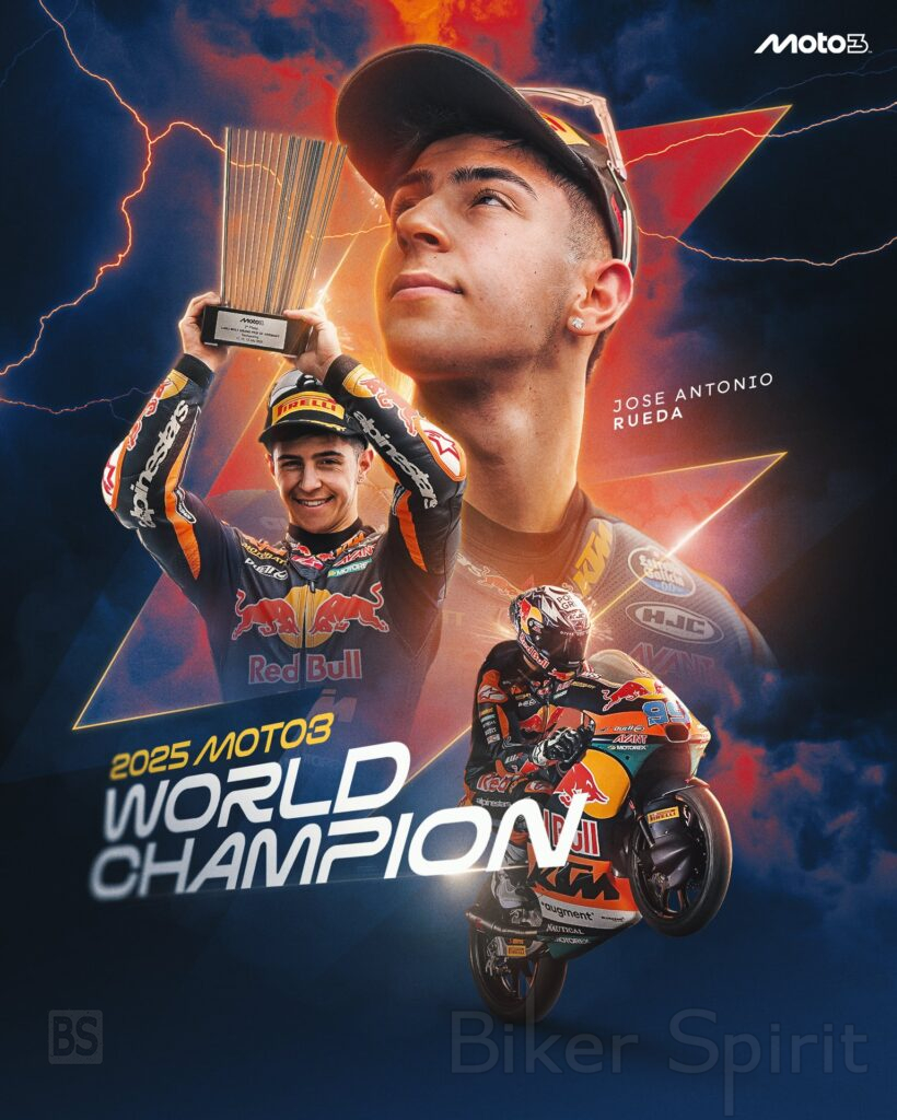 Η δράση στη Mandalika ήταν εκρηκτική, γεμάτη ένταση, ανατροπές και τελικά θρίαμβο για τον Jose Antonio Rueda, που κατέκτησε τον τίτλο του Παγκόσμιου Πρωταθλητή Moto3 για το 2025 και τη νίκη στον αγώνα, έπειτα από ένα φινάλε που διακόπηκε με κόκκινη σημαία.
