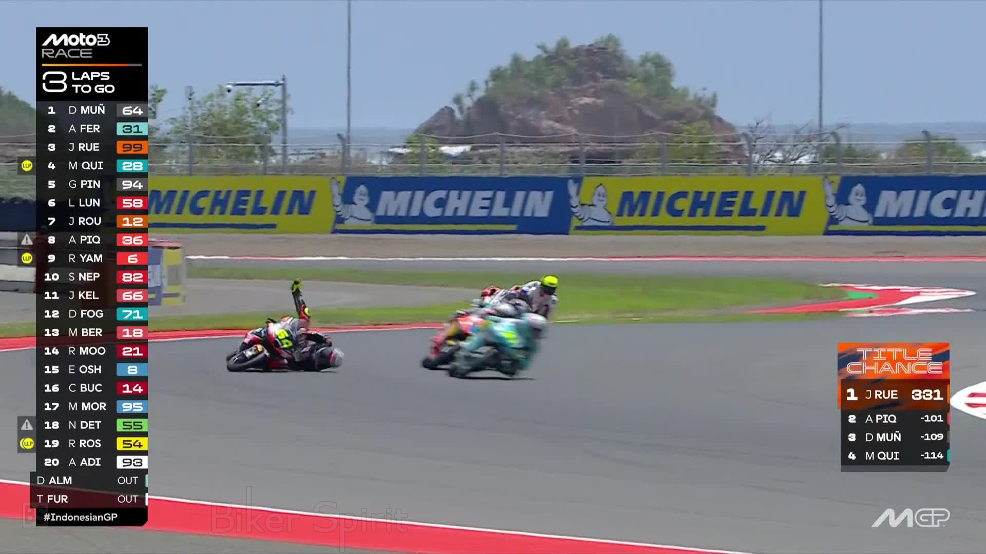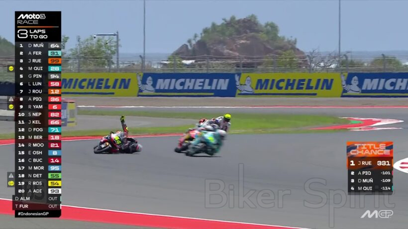 3 into 1 does not work out and that ends the race for Carpe, @Taiyofurusato72 and @DavidAlmansa22 #IndonesianGP pic.twitter.com/4On8cwySRZ