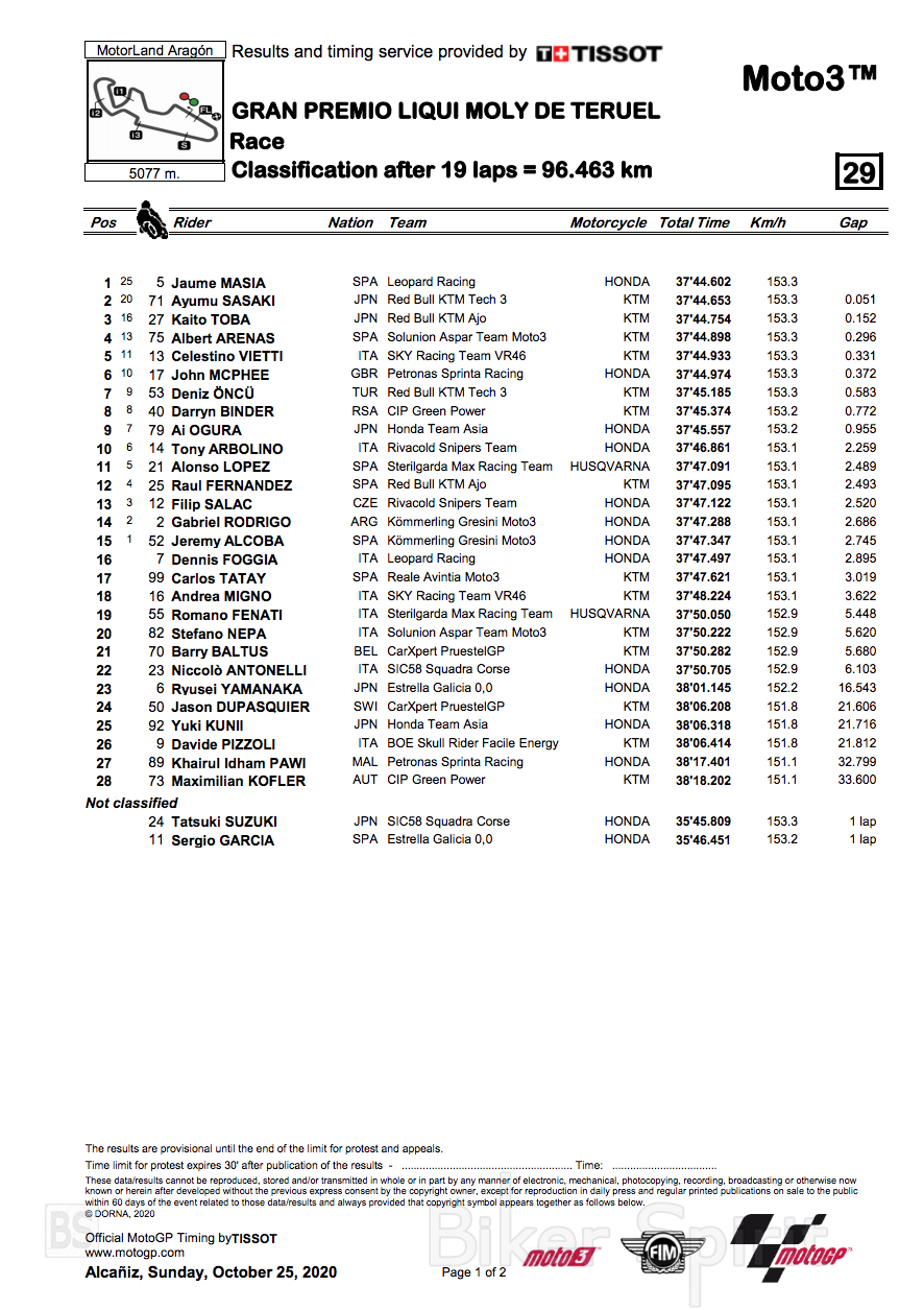 This week, takes Honda’s 800th Grand Prix win! 🥇@jaume_masia, the history maker! 🔝#Moto3 | #AlcanizGP 🏁 pic.twitter.com/se3N3MitUu— MotoGP™🏁 (@MotoGP) October 25, 2020
