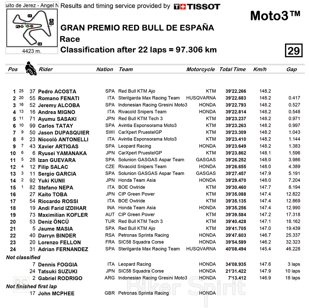 Ξεκινώντας από την 13η θέση στην σχάρα εκκίνησης ο Pedro Acosta, έκανε ένα καταπληκτικό αγώνα και πηρέ την τρίτη συνεχόμενη νίκη του στην πρώτη του σεζόν στην Moto3 και το 4ο συνεχόμενο βάθρο του στους πρώτους τέσσερεις αγώνες της χρονιάς!