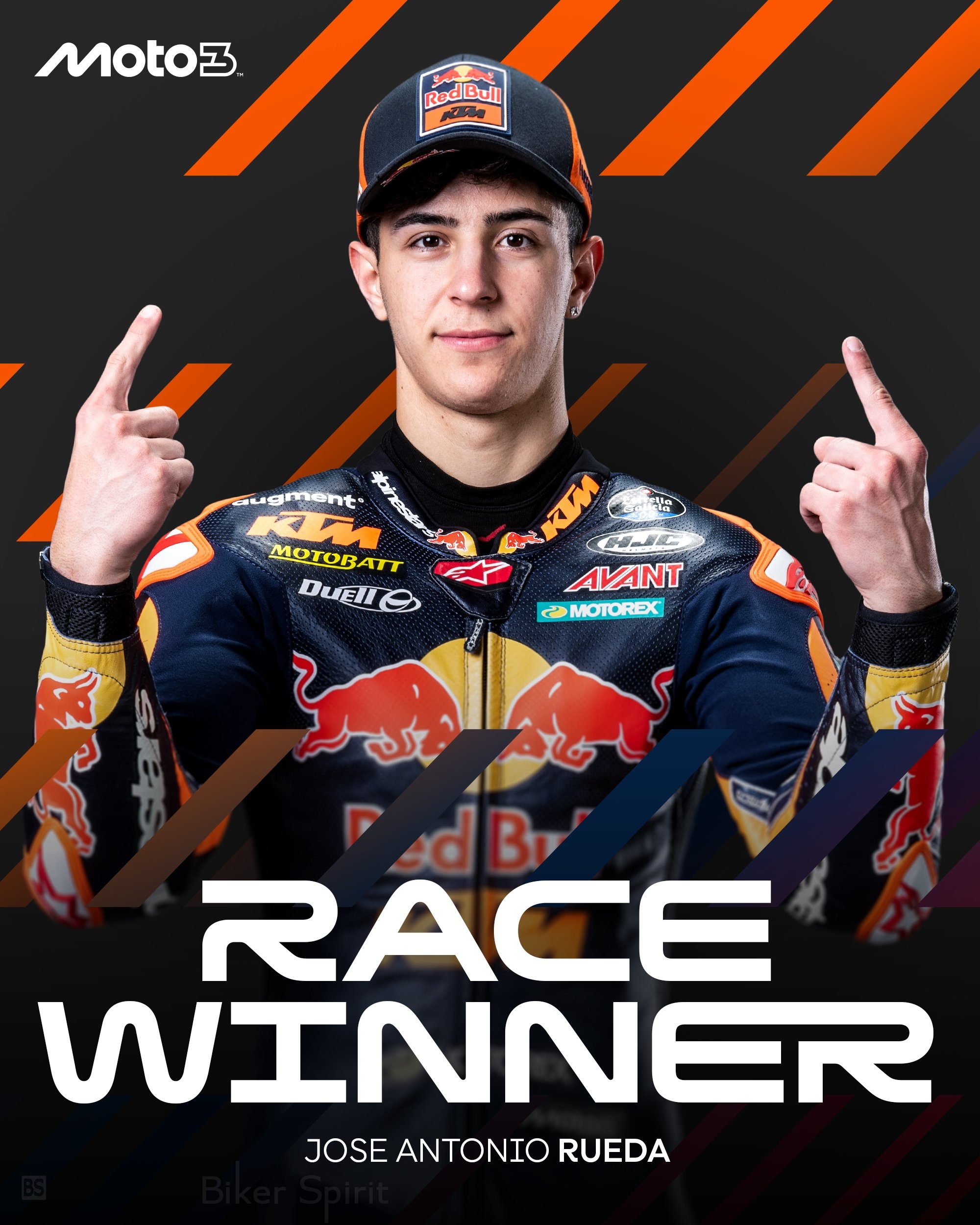 Ο Rueda επιβεβαίωσε ξανά την κυριαρχία του στη Moto3 φέτος, σε έναν αγώνα που όμως στιγματίστηκε από την κακή χρονικά διαχείριση της κόκκινης σημαίας.