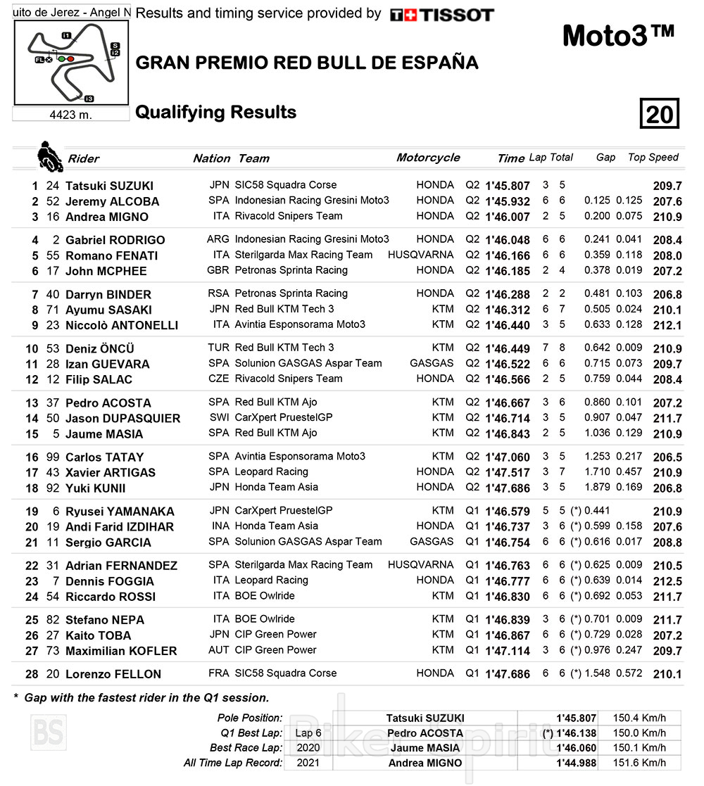 Moto3: Ο Tatsuki Suzuki κέρδισε την Pole position στην Jerez – Χρόνοι – Αποτελέσματα