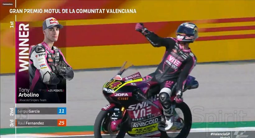 Ο Tony Arbolino κέρδισε το Grand Prix της Βαλένθια 2, τον προτελευταίο γύρο του Παγκόσμιου Πρωταθλήματος Moto3 2020.