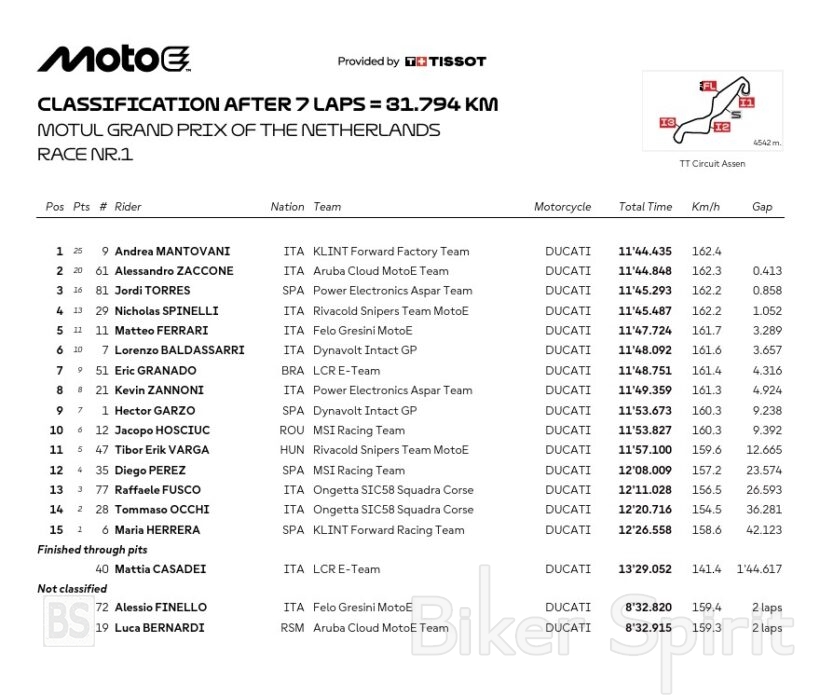 MotoE: Ο Mantovani κέρδισε τον Αγώνα 1 στο Assen – Πτώση του Casadei στον τελευταίο γύρο