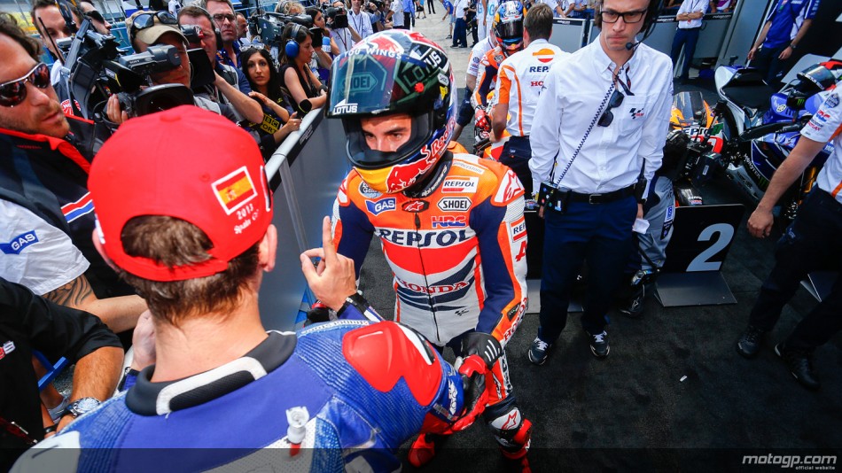 Ο ίδιος ο Marquez έδειξε να μην πιστεύει πως ήταν σωστή η προσπέραση που έκανε και το έδειξε όταν προσπάθησε δυο φορές να πλησιάσει τον Lorenzo , μια στο parc ferme και μια στο βάθρο, αλλά και τις δυο φορές «έφαγε πόρτα» από τον Lorenzo που του αρνήθηκε επιδεικτικά μπροστά στις κάμερες να χαιρετίσει τον Marquez. Ο νεαρός στην συνέντευξη ζήτησε συγγνώμη από τον Lorenzo που για άλλη μια φορά του «έριξε πόρτα» αφού αρνήθηκε να σχολιάσει την προσπέραση και είπε χαρακτηριστικά « έκανα δυο λάθη , ένα στην αρχή στην εκκίνηση και ένα στο τέλος που άφησα την πόρτα ανοικτή» . Σίγουρα οι σχέσεις των δυο Ισπανών έχουν μπει σε άσχημη πορεία.