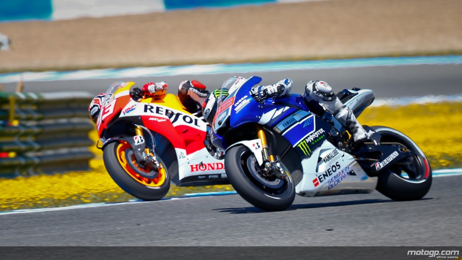 Πίσω του η μάχη εξελισσόταν μεταξύ Lorenzo και Marquez με τον νεαρό Ισπανό να κάνει αρκετές ριψοκίνδυνες επιχειρήσεις να περάσει τον παγκόσμιο πρωταθλητή χωρίς να τα καταφέρει . Έμεινε για κάποιους γύρους πίσω του και στον τελευταίο γύρο στην τελευταία στροφή έκανε μια κίνηση που έχει σχολιαστεί ποικιλοτρόπως από διαφόρους , το αποτέλεσμα ήταν ότι πέρασε τον Lorenzo και τερμάτισε δεύτερος.