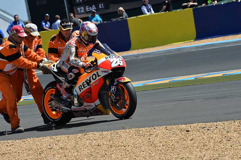 Ο Dani Pedrosa έπεσε στους πρώτους γύρους του αγώνα, αλλά ξαναμπήκε και συνέχισε. Ακόμα κι αν το Ισπανός αναβάτης είχε ελάχιστες πιθανότητες να διεκδικήσει βαθμούς, ήταν ζωτικής σημασίας γι ‘αυτόν να επανέλθει στον αγώνα και να δοκιμάσει πώς το τραυματισμένο χέρι του μπορεί να αντέξει σε αγώνα.