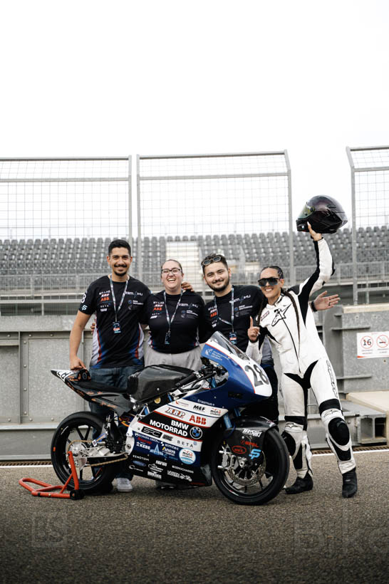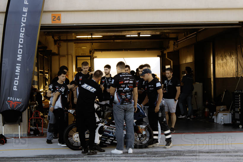 Η μέρα ξεκίνησε με το rain test, όπου η ομάδα το πέρασε με επιτυχία, και στη συνέχεια το dynamic test, briefing των οδηγών και τέλος σειρά είχαν τα 3 τεστ οδήγησης, δηλαδή θα τα περνούσα εγώ: το brake test (όπου ξεκινάς από ένα σημείο της πίστας και πρέπει να περάσεις ανάμεσα από 2 κώνους με 80 χλμ/ώρα και να φρενάρεις όσο πιο ακαριαία – σύντομα μπορείς), gimkana (μια σειρά ασκήσεων με κώνους όπως φιδάκι, παρατεταμένες και απότομες στροφές) και acceleration (όπου ξεκινάς στάσιμη από ένα σημείο της πίστας και πρέπει να περάσεις με τη μέγιστη ταχύτητα ανάμεσα από 2 κώνους τοποθετημένους περίπου 150 μέτρα απόσταση). Και κάπου εκεί άρχισα να καταλαβαίνω ότι εγώ θα οδηγήσω όντως την ηλεκτροκίνητη μοτοσυκλέτα της ομάδας!
