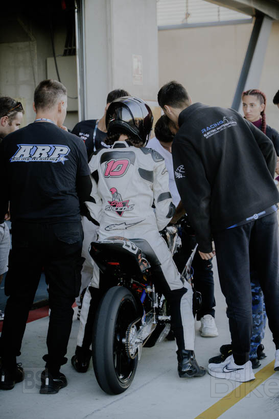 Εδώ να σημειωθεί ότι στις μοναδικές πίστες που έχω μπει είναι στα Μέγαρα και στις Σέρρες, κι αυτό από πολύ λίγες φορές, καθώς δεν έχω δική μου μοτοσυκλέτα για πίστα. Οπότε το σοκ μου βλέποντας τις ανηφόρες και τις κατηφόρες της συγκεκριμένης πίστας ήταν τεράστιο! Απίστευτα χαρούμενη προφανώς, αλλά και πάλι σοκαρισμένη!