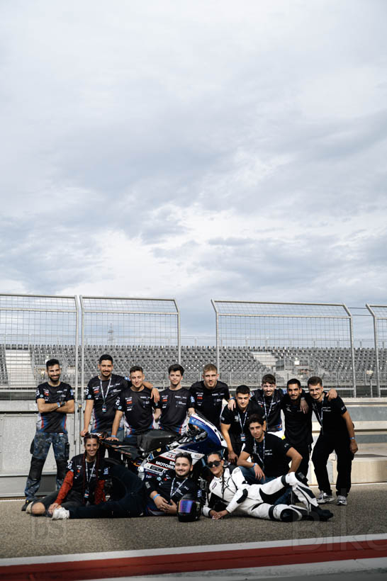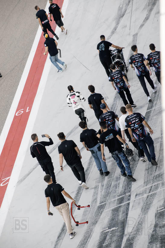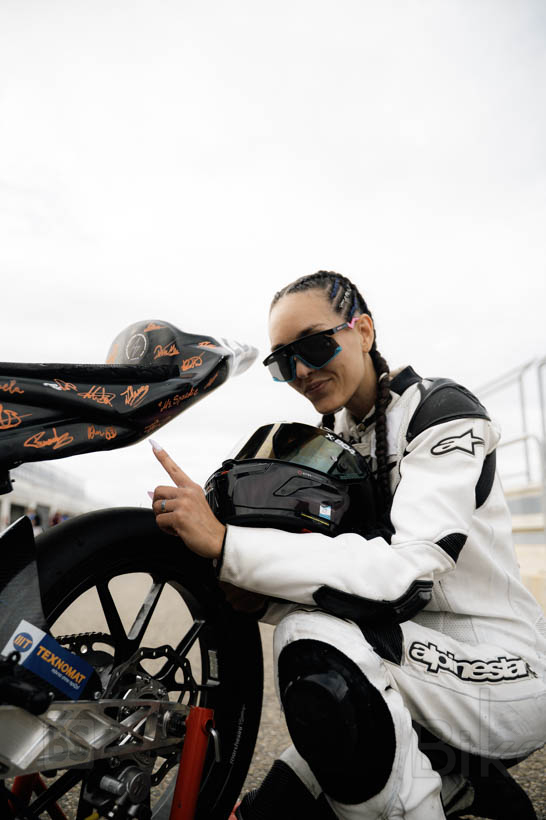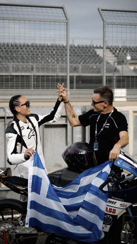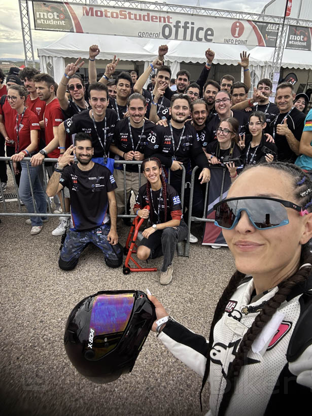 Στη συνέχεια είναι μια διαδικασία όπου στήνουν όλα τα μηχανάκια απ’ όλες τις ομάδες στην πίστα, ένα πανέμορφο θέαμα για όλους, κι εγώ στεκόμουν δίπλα στη μοτοσυκλέτα με την ελληνική σημαία στην ουρά της μοτοσυκλέτας, βαθιά συγκινημένη βλέποντας και την ομάδα μου με το χαμόγελο μέχρι τα αυτιά!