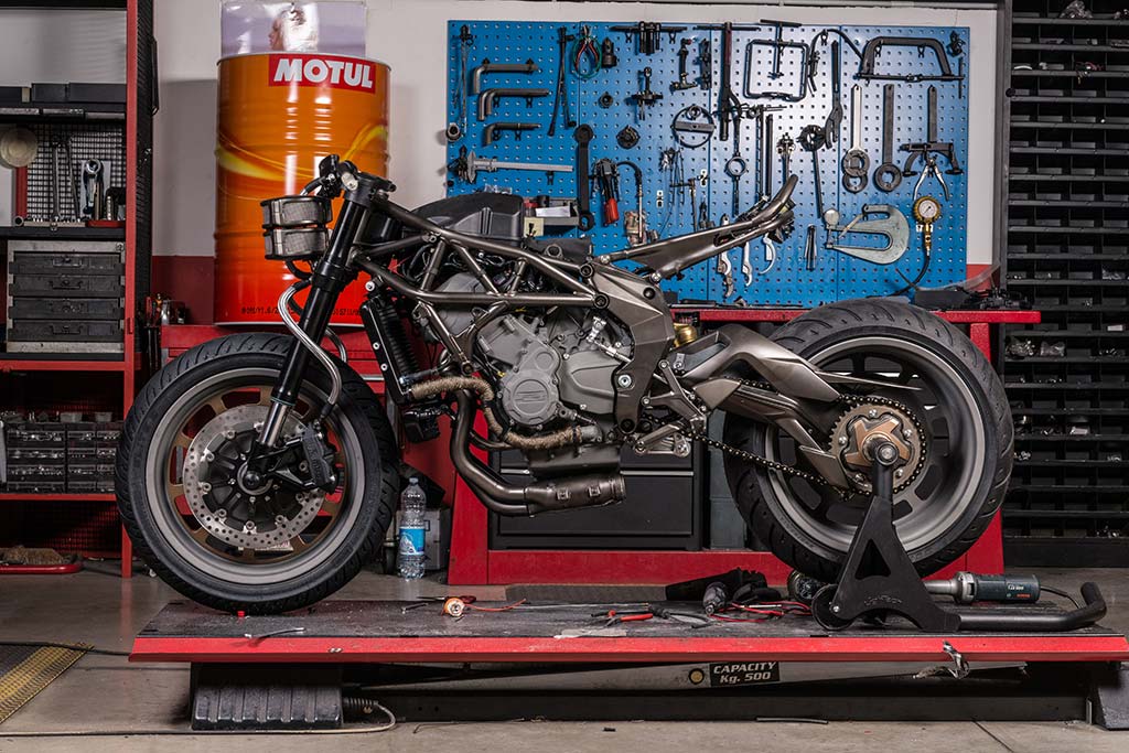 Έχοντας ως βάση αυτή την πλατφόρμα του Brutale, με τον 798cc τρικύλινδρη κινητήρα, και το αντίστοιχο πλαίσιο και ψαλίδι του, ο Luca Pozzato επιμελήθηκε αποκλειστικά άλλα τα υπόλοιπα μέρη της μοτοσυκλέτας με ιδιαίτερα χειροποίητα τμήματα, με σύγχρονες και καινοτόμες ιδέες σχεδίασης και ασυνήθιστα υλικά. Το τμήμα του πλαισίου που αποτελείτε από σωληνωτό χωροδικτύωμα δεν φαίνεται πλέον και μάλλον κρύβετε πίσω από αυτό που βλέπουμε και παραπέμπει σε χυτό πλαίσιο.